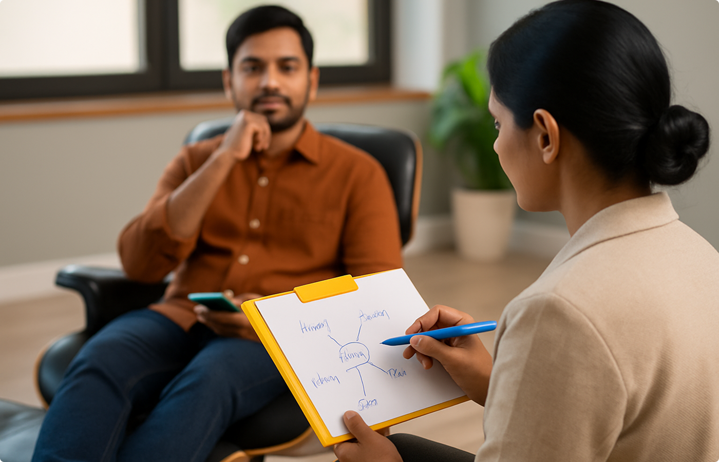 In-person follow-ups are usually scheduled every 4 weeks, while we stay connected in between through regular chats and calls for progress tracking and support as needed.